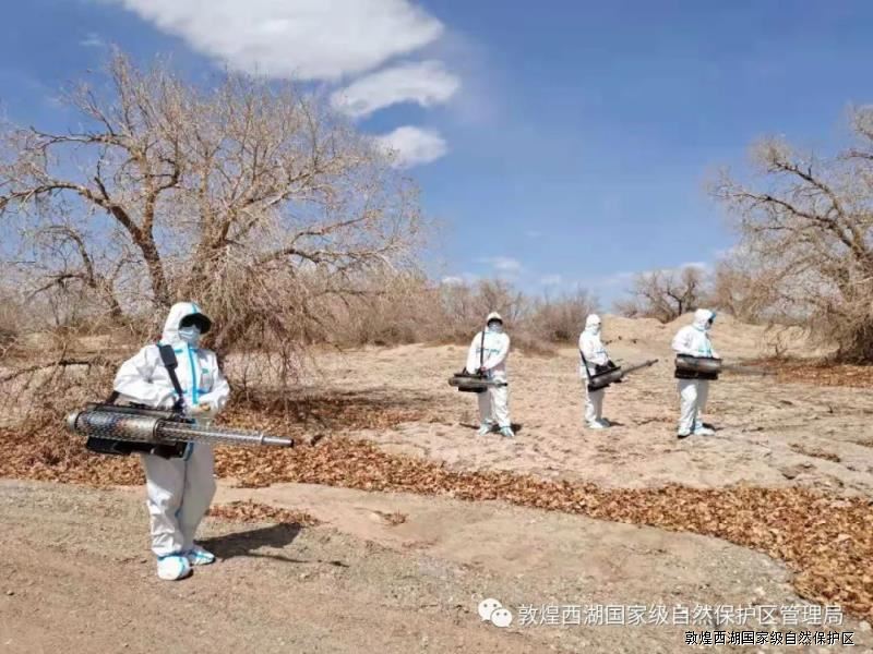 春季嫩芽开绽是消灭越冬的病菌、介壳虫类等病虫害传播的关键时期。近日,敦煌西湖保护区局组成防治队伍,利用捕鼠笼、烟雾机和喷雾器,采用高效、低毒、抵残留农药对保护区沙包迷阵、火烧湖区域内胡杨、红柳、等树上的病虫害全面开展防虫施药作业。本...
