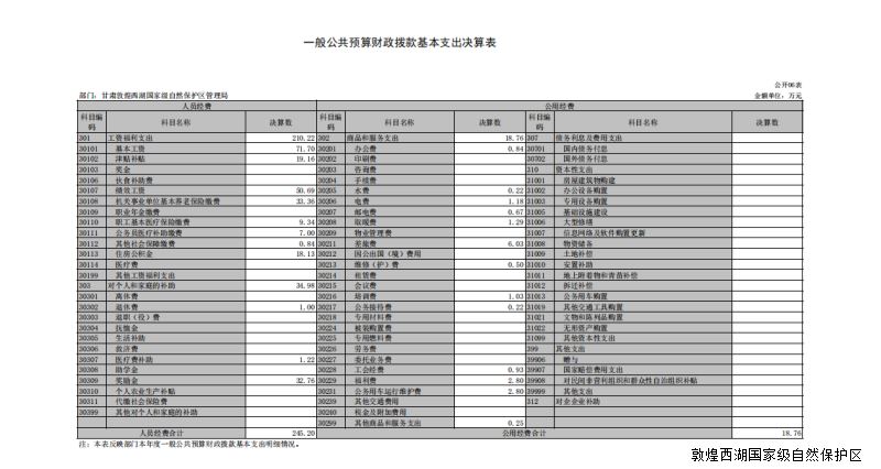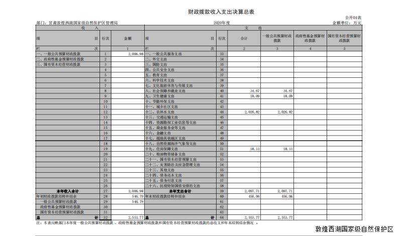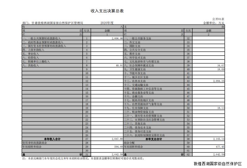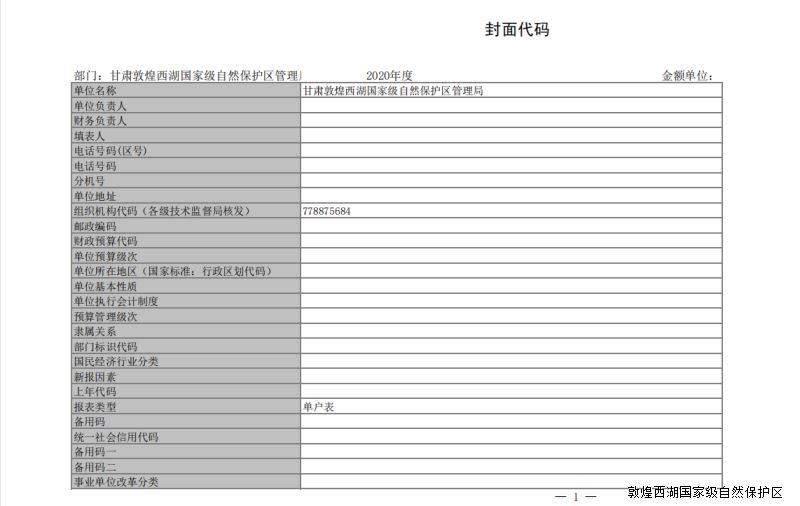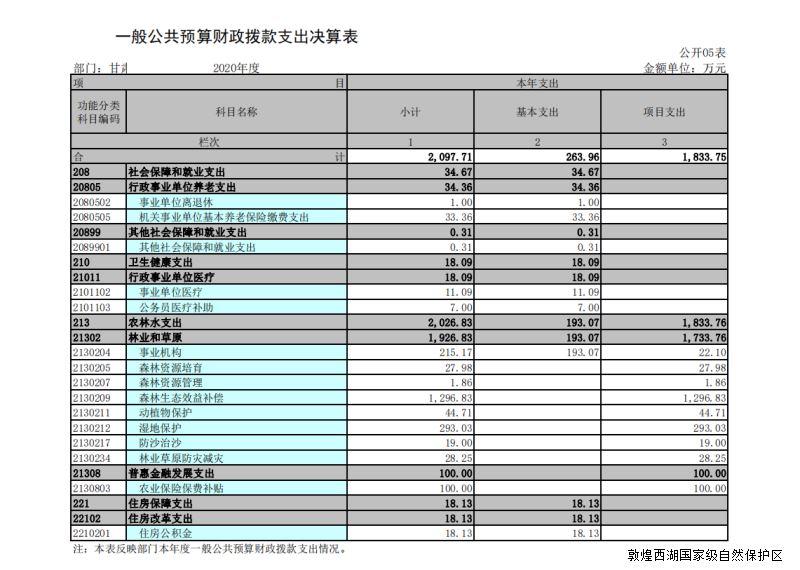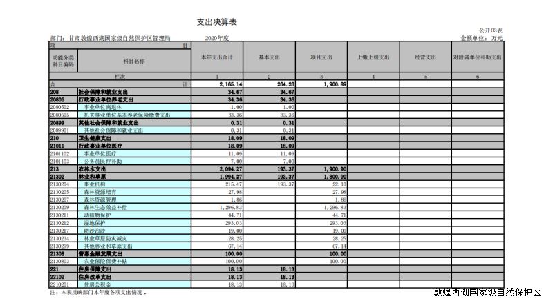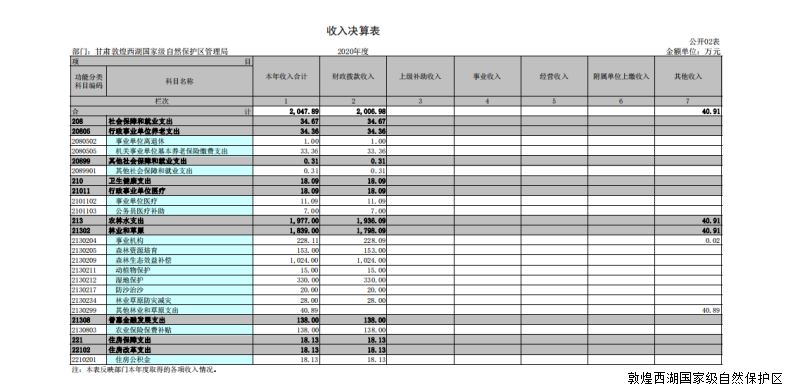 2020年度甘肃敦煌西湖国家级自然保护区管护中心部门决算