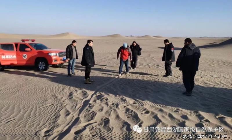 为了加强保护区生态资源安全,打击震慑非法捡拾风凌石、盗猎、穿越等破坏生态环境的违法行为。经敦煌西湖管护中心党委研究决定,抽调林政稽查大队8名工作人员开展为期六天的冬季巡查工作。