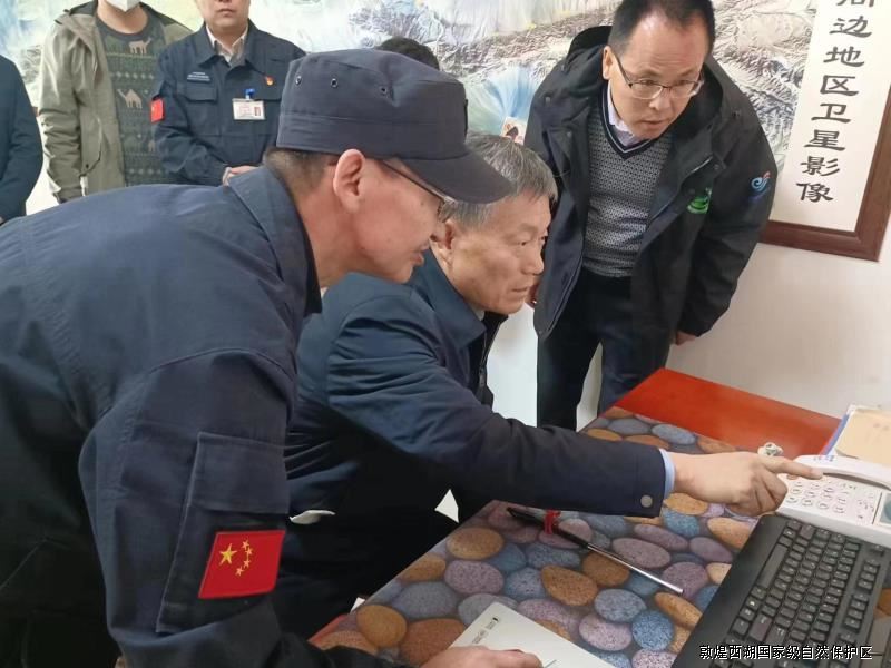 3月9日上午,国家林草局森林草原防火督察专员王海忠、防火中心副主任冯晓东等一行四人到敦煌西湖保护区检查指导防火工作。