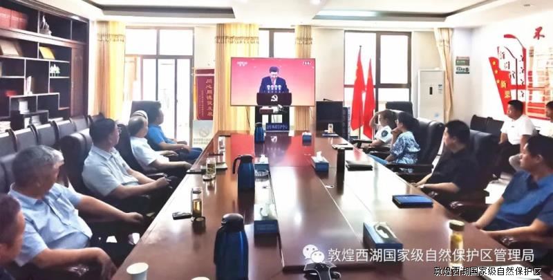 6月29日上午,庆祝中国共产党成立100周年“七一勋章”颁授仪式在人民大会堂隆重举行。敦煌西湖管护中心组织全体党员干部收看了大会实况。