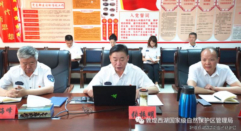 7月8日,省林草局党组成员、副局长张世虎带领党史学习教育第一巡回指导组,莅临敦煌西湖管护中心采用听取汇报、查阅资料、党史宣讲等形式对中心党史学习教育工作情况进行了巡回指导。