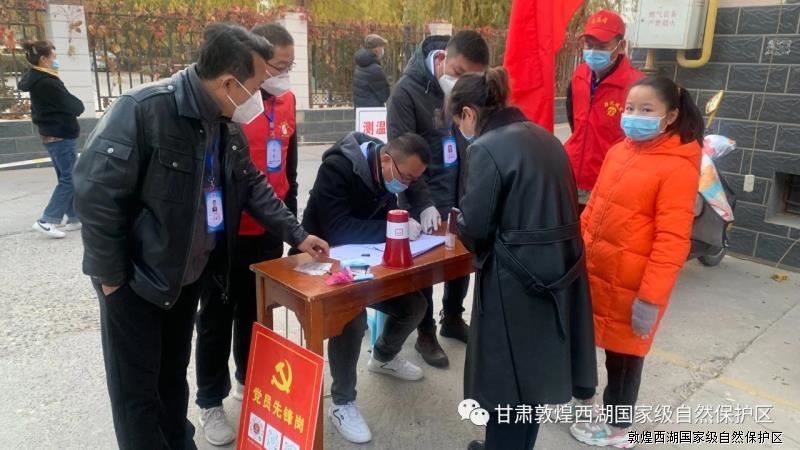 让党旗在防控疫情斗争第一线高高飘扬,疫情有需要,组织有号召,党员来“请战”!敦煌西湖管护中心组织党员干部迅速行动,主动到共建社区“请战”,配合社区开展疫情防控相关工作,全力发挥党组织战斗堡垒作用和党员先锋模范作用,全面落实联防联控措施,构筑群防群治的严密防线。